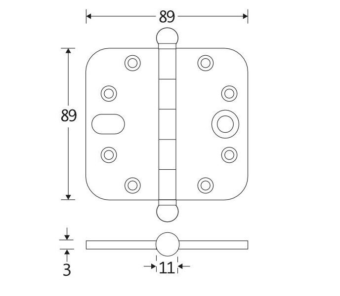 Kogellagerscharnier SKG3 89×89 ronde hoek bol glans chroom