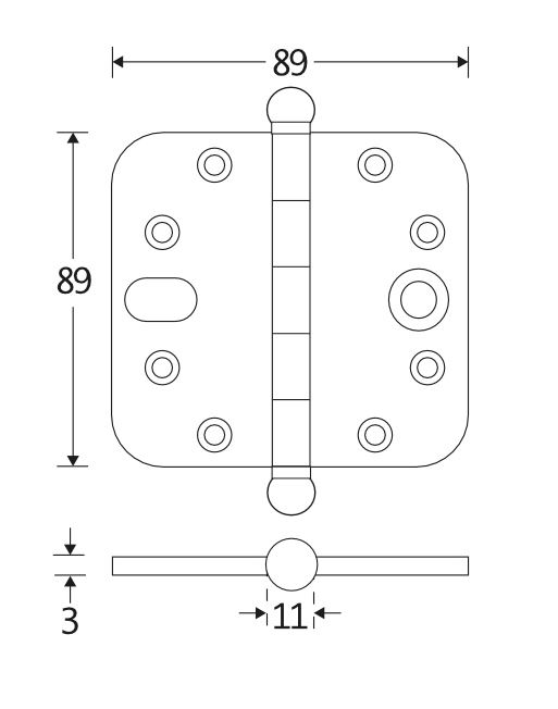 Kogellagerscharnier SKG3 89×89 ronde hoek bol mat chroom