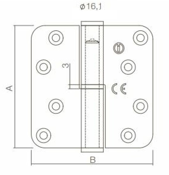 Kogelstift Paumelle DIN links afgerond 89x89x3 rvs
