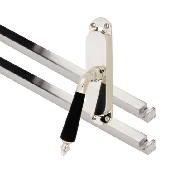 Kruk-espagnolet Antique ebben links glans nikkel inclusief 2 stangen