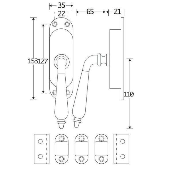 Model Antique ebben komt uit onze Mi Satori collectie. Deze variant kan toegepast worden op openslaande dubbele ramen en stolpramen. En kan ook toegepast worden op openslaande tuindeuren, dubbele buitendeuren en stolpdeuren. Krukespagnolet incl. 3 geleiders, 2 eindstukjes en 2 stangen (1,10 & 1,40mtr).