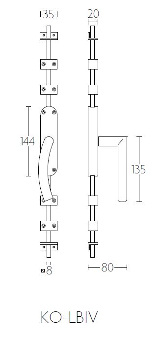Deze kruk-espagnolet wordt geleverd inclusief vier geleiders, twee eindstukjes en twee stangen geschikt tot 2900 mm.
