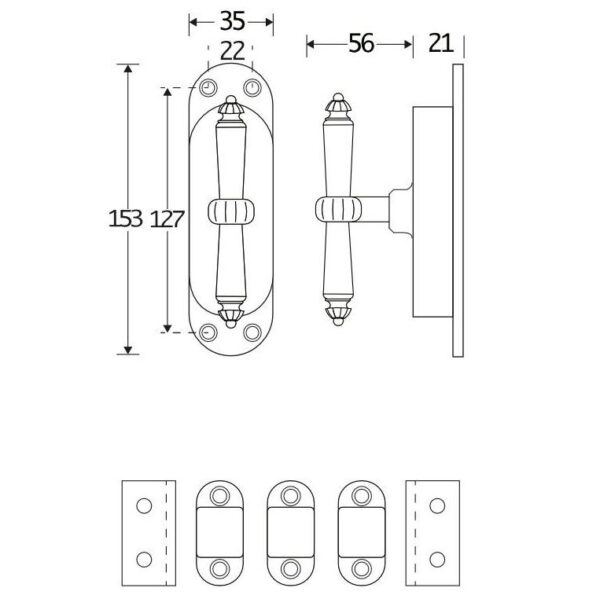 Kruk-espagnolet Nouveau ebben messing gelakt inclusief 2 stangen