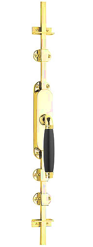 Deze kruk-Espagnolet is van Formani uit de serie TIMELESS, 1934 Stokstraat. Deze kruk-espagnolet wordt geleverd inclusief vier geleiders, twee eindstukjes en twee stangen geschikt tot 2900 mm. Het materiaal is messing ongelakt en ebbenhout.
