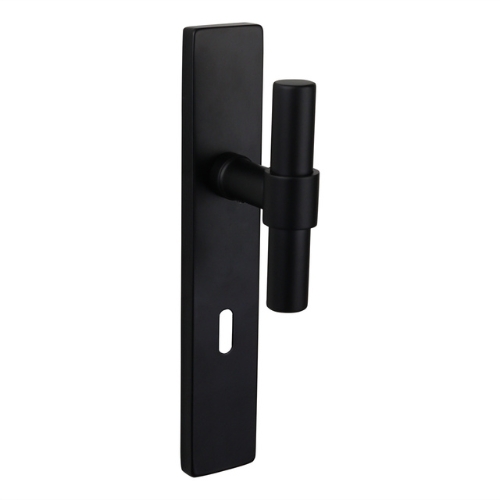 Deurklink Pesaro op rechthoekig schild is vervaardigd uit roestvast staal en is naderhand afgewerkt met een zwarte poedercoat. Deze deurklink wordt geleverd met schild en heeft een stalen onderconstructie. De h.o.h. maat van de deurklink tot het sleutelgat is 72 mm. Geschikt voor een deurdikte van 38 – 42 mm