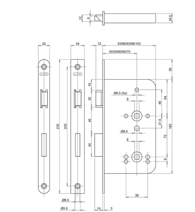 Lips vrij- en bezetslot 2486 wit gelakt doornmaat 60 mm