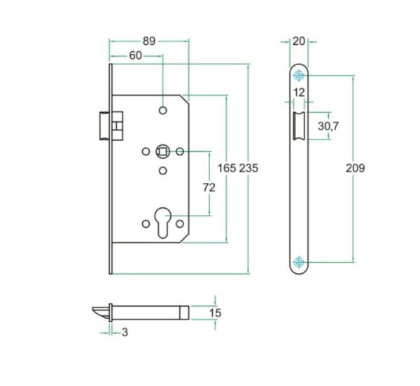 - Afmetingen conform DIN 18251 (is standaardmaat voor projectsloten in Nederland & België)