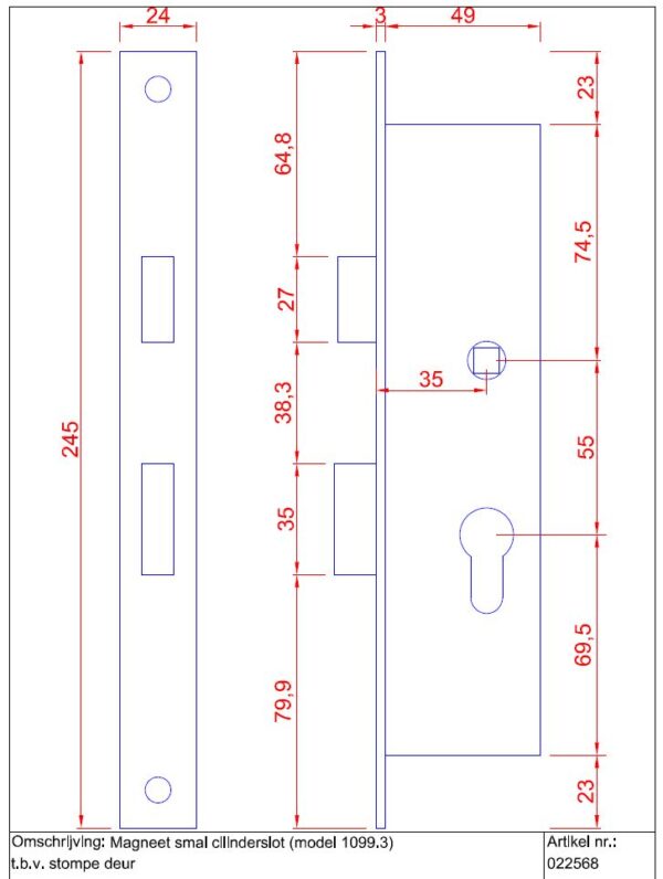 Magneet smal cilinderslot Met zwarte Rechte voorplaat