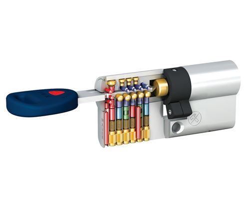 Deze cilinder heeft een tweedelige meenemer als unieke feature. Deze meenemer overbrugt het montagegat en daarmee kan de cilinder bij dit punt niet afbreken.