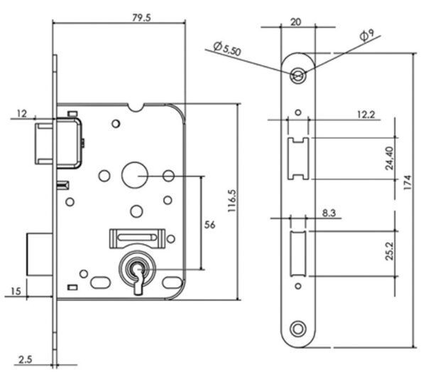 Mauer Dag-en nacht klavierslot 1535 SL56 met zwart gelakte voorplaat