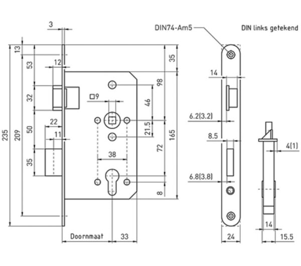 Mauer dag- en nachtslot links PC72, 4206 met verzinkte voorplaat