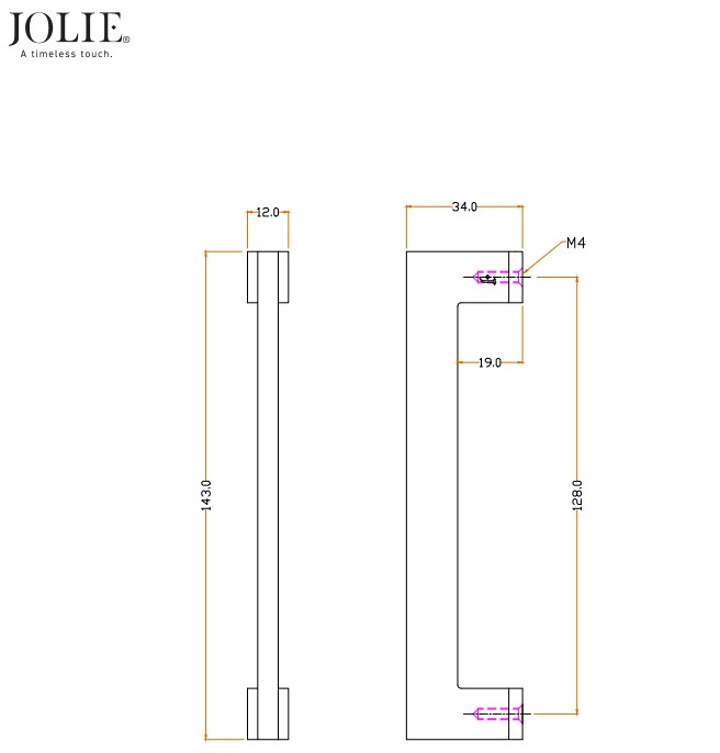 De meubelgreep Jolie Evoke is vervaardigd uit hoogwaardig messing en voorzien van een bronzen coating. Voor een moeiteloze montage worden alle benodigde bevestigingsmaterialen bijgeleverd. De hart op hart afstand van de schroefgaten is 128 mm.