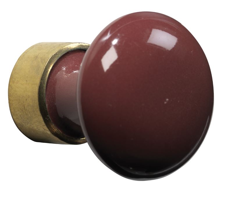 Meubelknop Paddenstoel porselein 30mm messing ongelakt/bordeaux