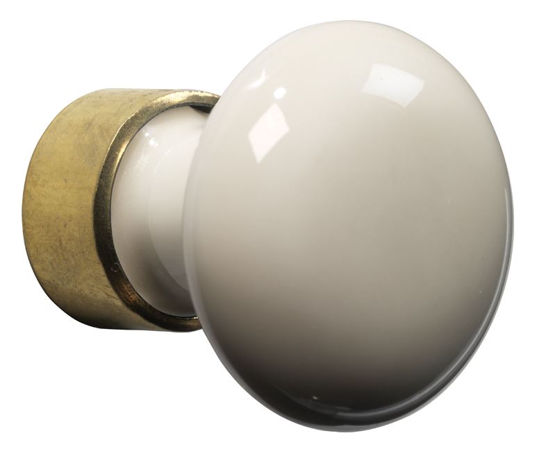 Meubelknop Paddenstoel porselein 30mm messing ongelakt/camee