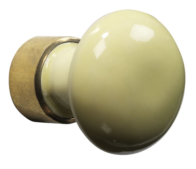 Meubelknop Paddenstoel porselein 30mm messing ongelakt/citroen