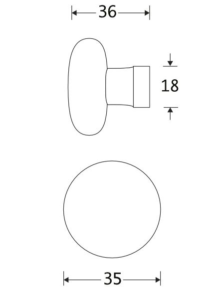 Meubelknop Paddenstoel porselein 35mm ivoor/messing ongelakt