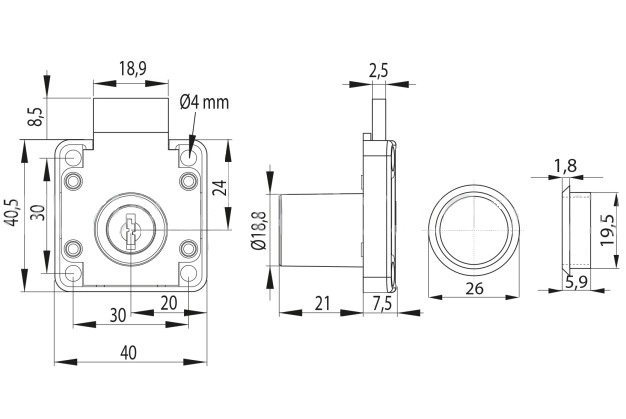 Dit meubelslot is verschillend sluitend. Er worden 2 sleutels bijgeleverd.