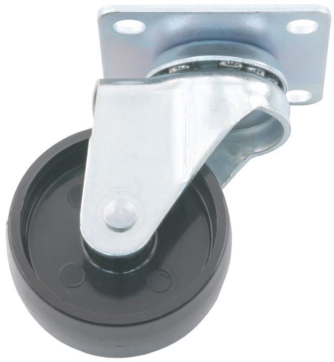 De behuizing van dit zwenkwiel is staal verzinkt. Het wiel is kunststof met een rubberband. Ook is dit zwenkwiel voorzien van een enkele kogelkranslager.