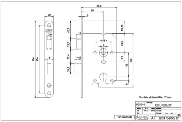 Nemef cilinder PC55 insteekslot 1269/4 met staal gelakte voorplaat