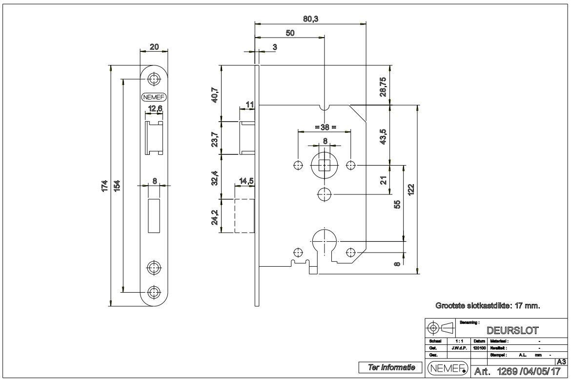 Het Nemef deurslot 1269/3 is afsluitbaar met een cilinder en is uitermate geschikt voor binnendeuren die extra goed moeten worden afgesloten, zoals bijvoorbeeld een tussendeur van de woning naar de garage. De 1269/3 heeft een zwarte voorplaat.