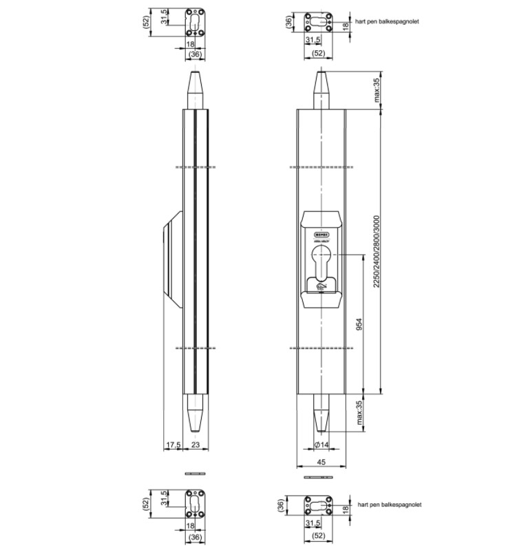 Nemef espagnoletsluiting opbouw SKG3 links & rechts toepasbaar 2250mm wit