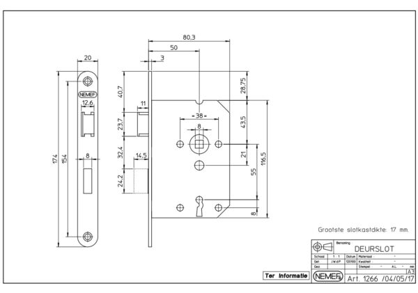 Nemef klavier SL56 insteekslot 1266/5 met messing voorplaat