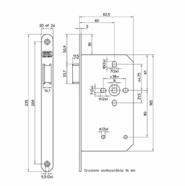 Afmeting slotkast (HxBxD): 165x93x16 mm