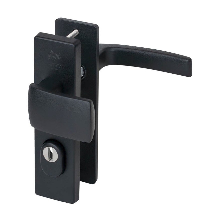 Nemef veiligheidsbeslag PC72 kortschild knop/kruk 3405-II met kerntrek beveiliging SKG3 aluminium zwart