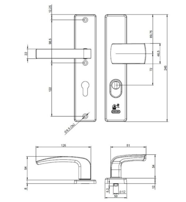 – Voor voordeuren met een dikte van 38 tot 54 mm
