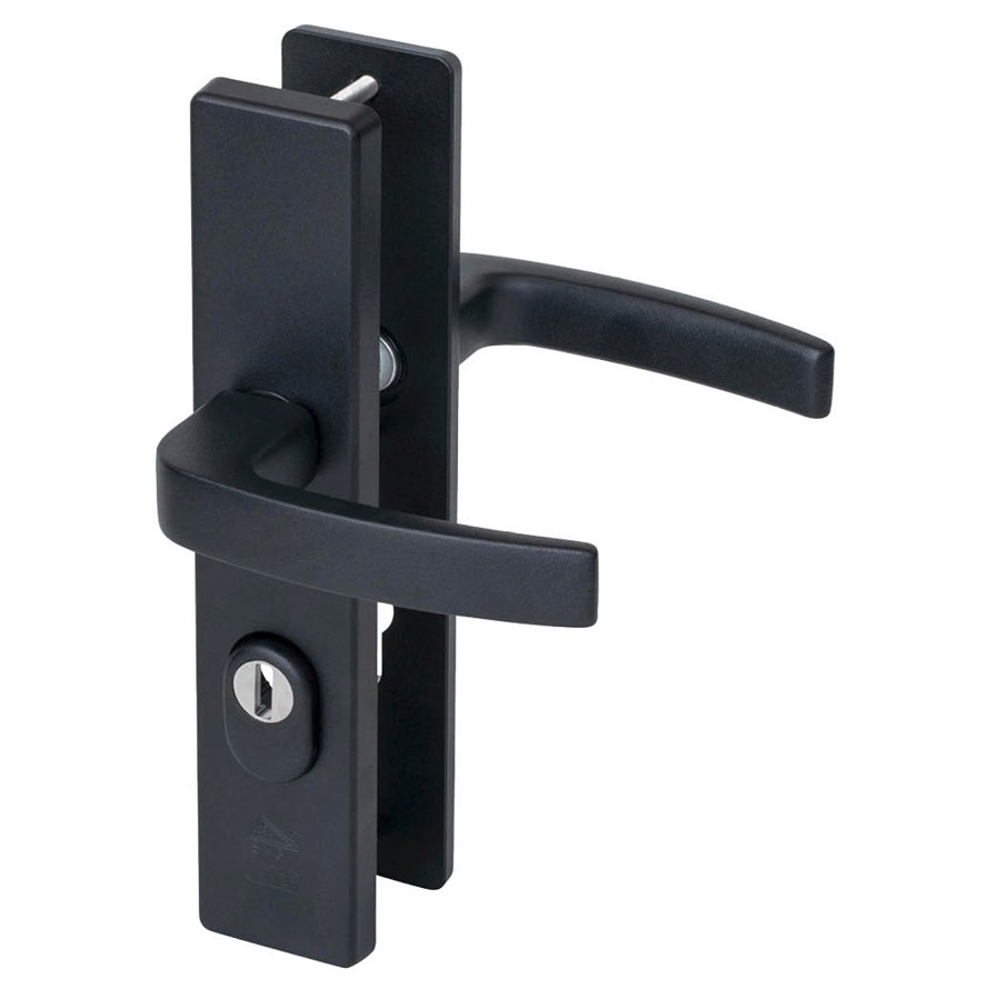 Nemef veiligheidsbeslag PC72 langschild kruk/kruk 3417-II met kerntrek beveiliging SKG3 aluminium zwart