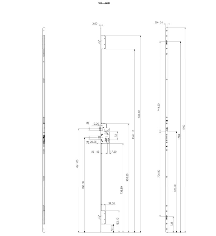 Nemef veiligheidsmeerpuntssluiting 5060 doornmaat 55mm PC72 24x1700mm krukbediend SKG3