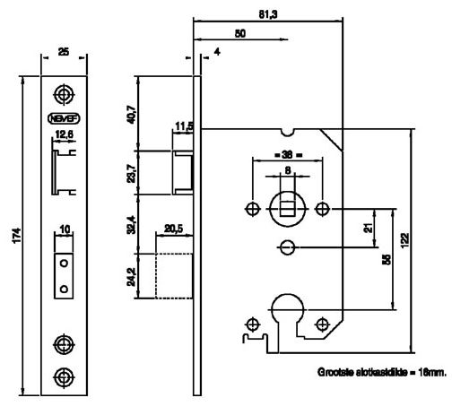 Door universele maatvoering vervangt dit slot eenvoudig het bestaande slot.
