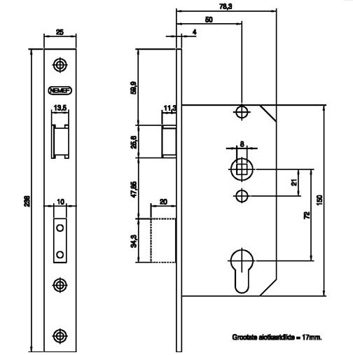 Door universele maatvoering vervangt dit slot eenvoudig het bestaande slot.