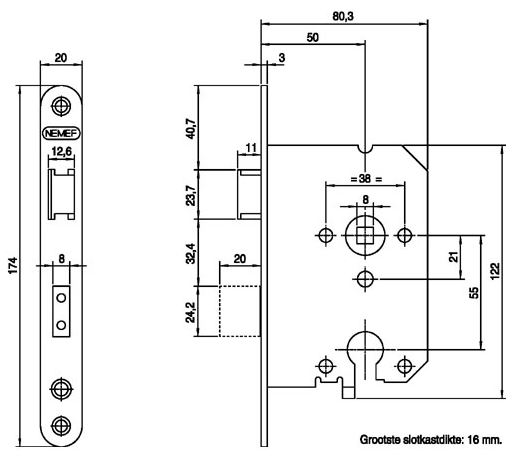 Nemef Veiligheidsslot PC55 SKG1 Ronde rvs voorplaat