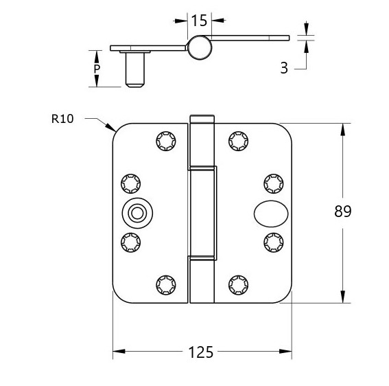 Dit scharnier is door zijn ronde hoeken uitermate geschikt om machinaal te verwerken. Met een freesmachine kan de uitsparing in deur of raam en kozijn gemaakt worden. Daarnaast zorgt de doorgezette knoop voor meer montagegemak. Het draaipunt van het scharnier is namelijk uit het midden geplaatst, waardoor inkrozing van de knoop in het kozijn niet nodig is.