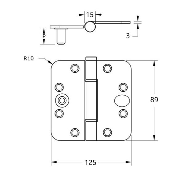 Door zijn ronde hoeken is hij uitermate geschikt om machinaal te verwerken. met een freesmachine kan de uitsparing in deur of raam en kozijn gemaakt worden. Daarnaast zorgt de doorgezette knoop voor meer montagegemak. Het draaipunt van het scharnier is namelijk uit het midden geplaatst, waardoor inkrozing van de knoop in het kozijn niet nodig is. Dit scharnier is ook leverbaar met een dubbele doorgezette knoop en daardoor ideaal voor de toepassing bij klepramen of uitzetramen. Door de dubbele doorgezette knoop voorkom je dat bij regenachtig of vochtig weer het water blijft liggen en jouw raamkozijnen vervolgens aantast.