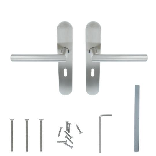 ODShop deurklink Modern haaks op ovaal schild SL56 rvs is gemaakt van roestvast staal. De deurklink is naderhand geborsteld, wat de deurklink zijn matte uitstraling geeft. Zijn lange levensduur heeft de deurklink ook te danken aan het gebruik van rvs. Deze deurklink wordt per paar geleverd en is uitermate geschikt voor het afsluiten van kamers. Zo kan de deurklink bijvoorbeeld gebruikt worden voor het afsluiten van een slaapkamer. De h.o.h. maat is 56 mm. Het gaat hier om de afstand vanaf de bovenkant van het sleutelgat tot aan de deurklink. Om ervoor te zorgen dat de deurklink beter op zijn plek wordt gehouden, is het schild voorzien van nokken. ODShop deurklink Modern haaks op ovaal schild SL56 rvs is getest op intensief gebruik en heeft gebruikersklasse vier meegekregen. Daarnaast voldoet de deurklink aan de Europese Norm 1906. Deze norm richt zich onder andere op de duurzaamheid, sterkte en veiligheid van deurbeslag.