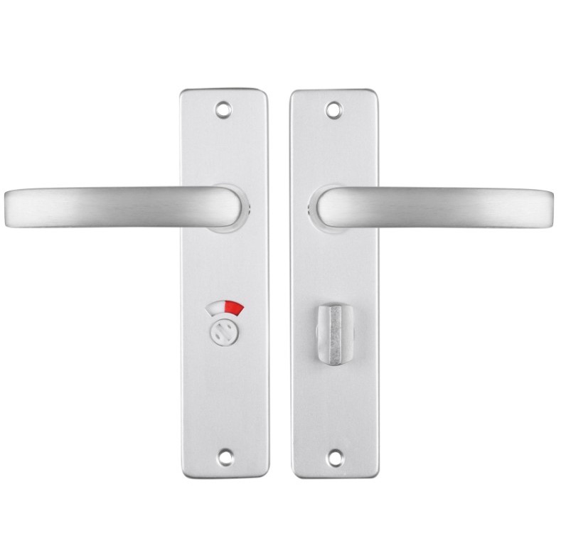 Het materiaal van deze schilden en deurklink is aluminium. De h.o.h. maat van de deurklink tot de WC-sluiting is 63 mm. De stift maat is vierkant 8 mm. Bij deze set worden 2x patentbout en 2x huls meegeleverd. Geschikt voor deuren tot een maximale deurdikte van 40 mm.