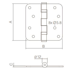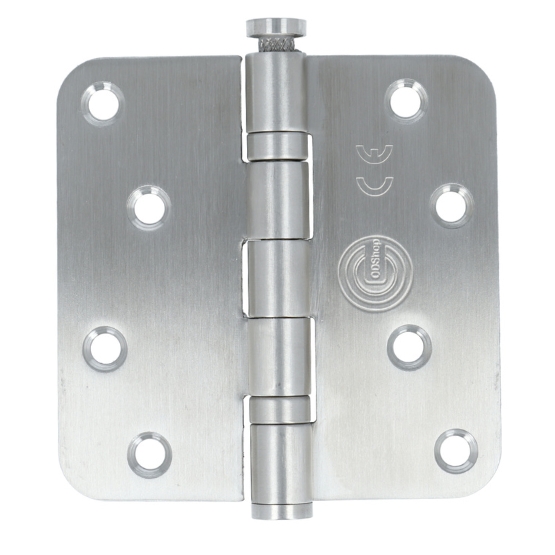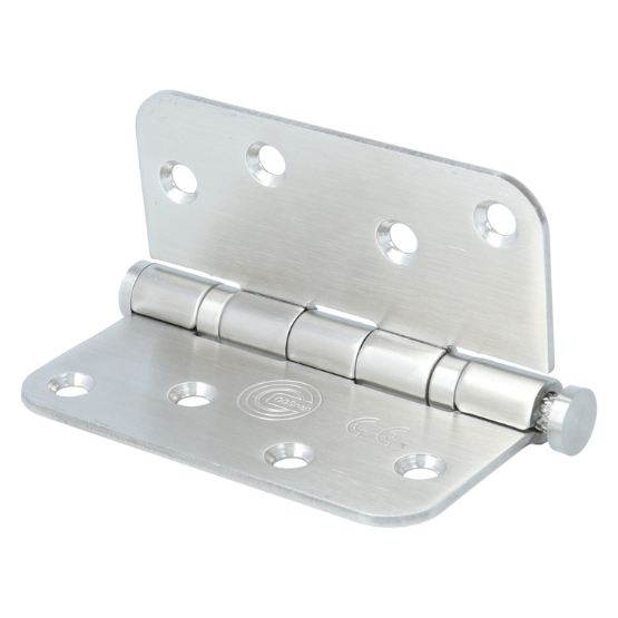 Kogellagerscharnier met ronde hoeken. Scharnierpen demontabel. 304 rvs geborsteld.