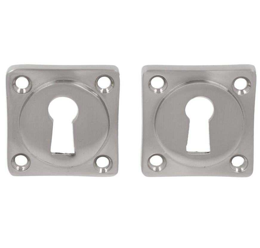 Deze vierkante rozetten met sleutelgat zijn uitgevoerd in nikkel en zijn naderhand geborsteld, waardoor het een matte uitstraling krijgt. Deze rozet is voorzien van schroefgaten en wordt per paar geleverd.
