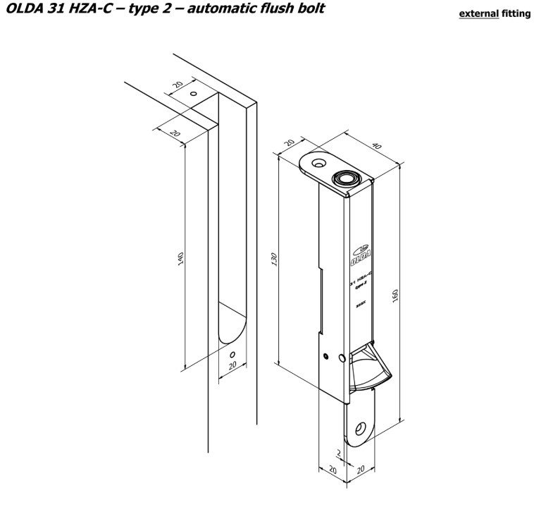 Olda automatische kantschuif type 31 voor stalen/aluminium/houten deuren type 2 staal verzinkt