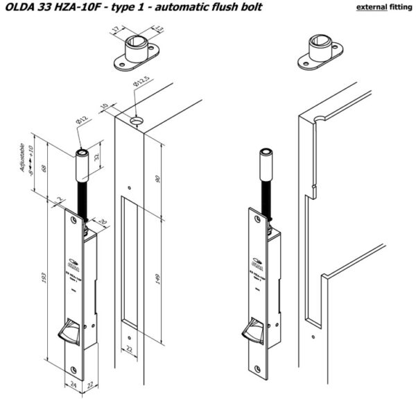 Deze kantschuif met rechte RVS voorplaat is geschikt voor stalen en aluminium deuren en wordt zowel boven- als onderin de passieve deur bevestigd. De kantschuif is voorzien van een 30 mm schoot en heeft een 15 mm schootuitslag die met een 3 mm inbussleutel -8 tot +10 mm verstelbaar, zodat in elke situatie de ideale schootuitslag kan worden bereikt. Bovendien is deze schoot een zogenaamde verende schoot. Mocht de schoot omhoog komen wanneer deze niet recht onder of boven de sluitkom zit, wordt de schootuitslag ingedrukt om beschadigingen aan het kozijn te voorkomen.