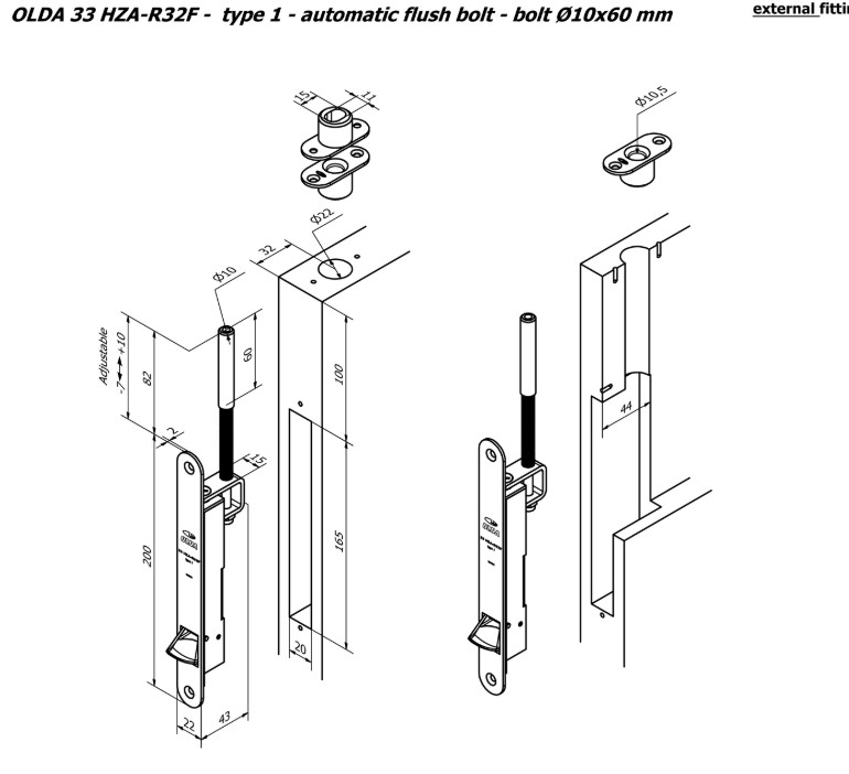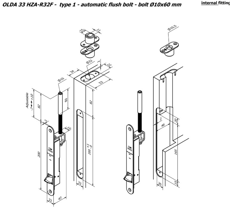 Olda automatische kantschuif type 33 voor stalen/aluminium/houten deuren schoot Ø10mm lengte 60 mm type 1 staal verzinkt