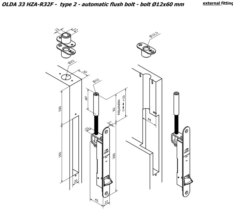 Olda automatische kantschuif type 33 voor stalen/aluminium/houten deuren schoot Ø12mm lengte 60 mm type 2 staal verzinkt