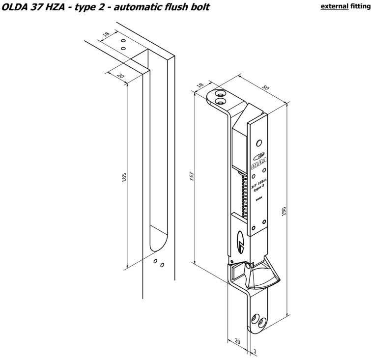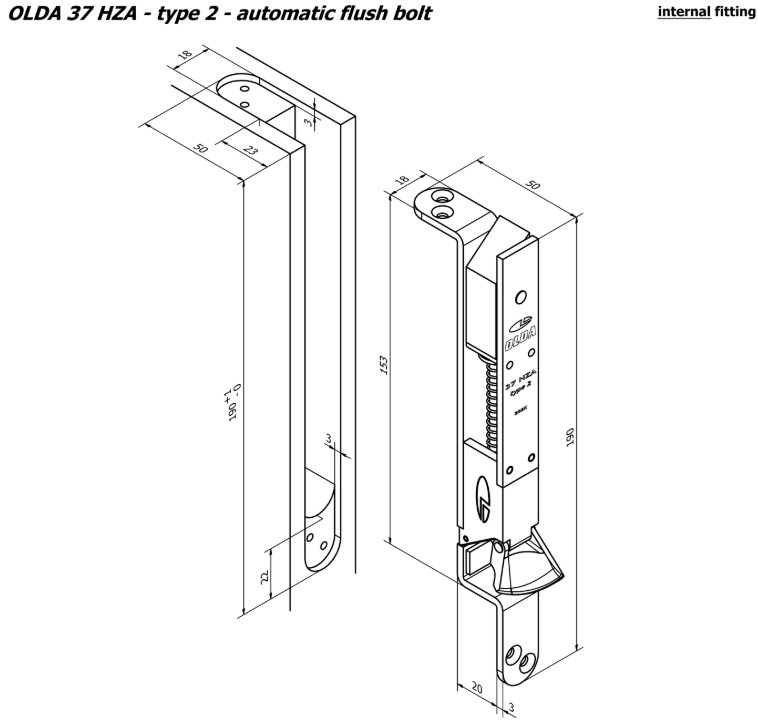 Olda automatische kantschuif type 37 voor stalen/aluminium/houten deuren type 2 staal verzinkt