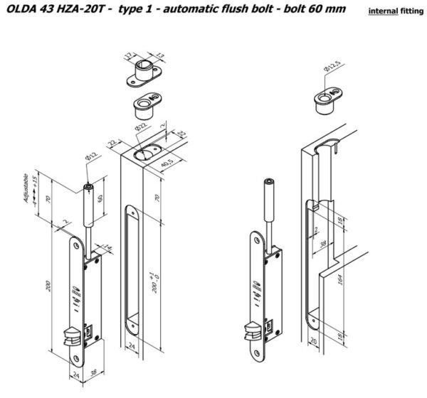 Olda automatische kantschuif type 43 doornmaat 20mm voor stalen/aluminium/houten deuren type 1 staal verzinkt
