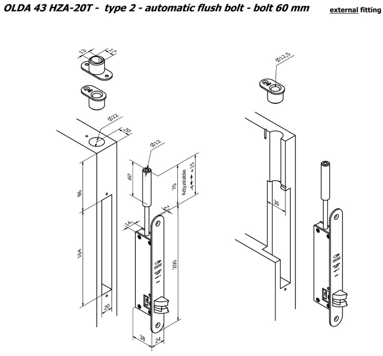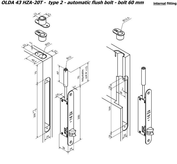 Olda automatische kantschuif type 43 doornmaat 20mm voor stalen/aluminium/houten deuren type 2 staal verzinkt