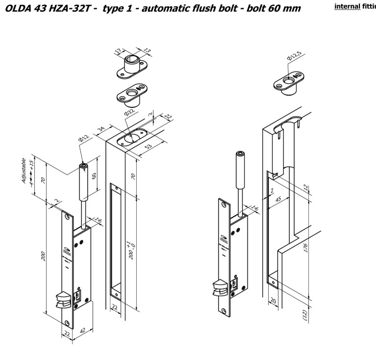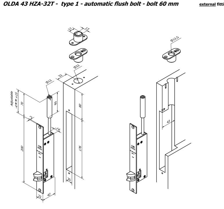 Olda automatische kantschuif type 43 doornmaat 32mm voor stalen/aluminium deuren type 1 staal verzinkt