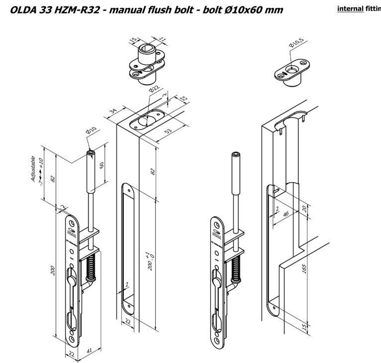 Olda kantschuif type 33 schoot Ø10 mm lengte 60 mm voor stalen/aluminium deuren staal verzinkt/rvs