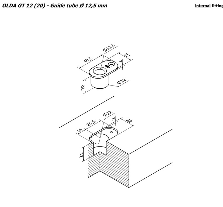 Olda schootgeleider type GT1220 schoot Ø12mm tbv stalen/aluminium/houten deuren zamak verzinkt